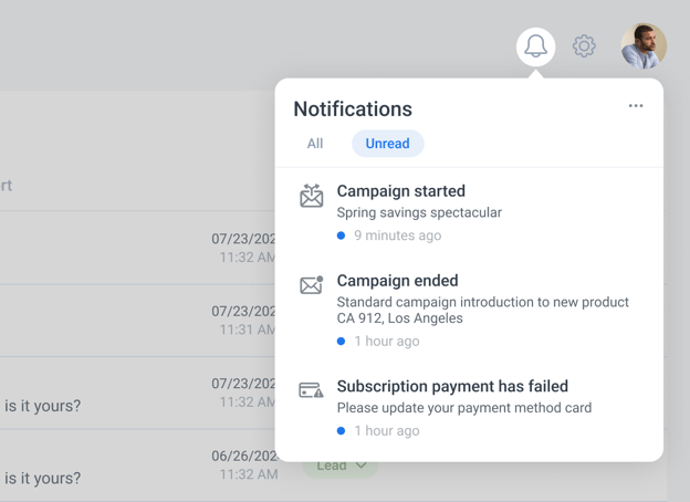 - With just a click of a button, you can turn off the campaign notifications as well as all other notifications that we will add in the future. The only required notifications are any payment issues because without a good standing account, you won’t be able to resume use. But hey, an inactive account is not going to get you more leads and deals now, is it?