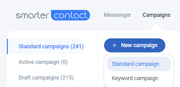 1. Go to the Campaigns page and click New Campaign -> Standard campaign