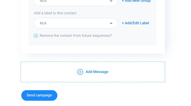 • After Message #9 you can only click Send campaign. It's not possible to set up more than 9 messages in the drip campaign