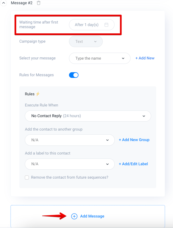 5. Select + Add a message to set up Message #2