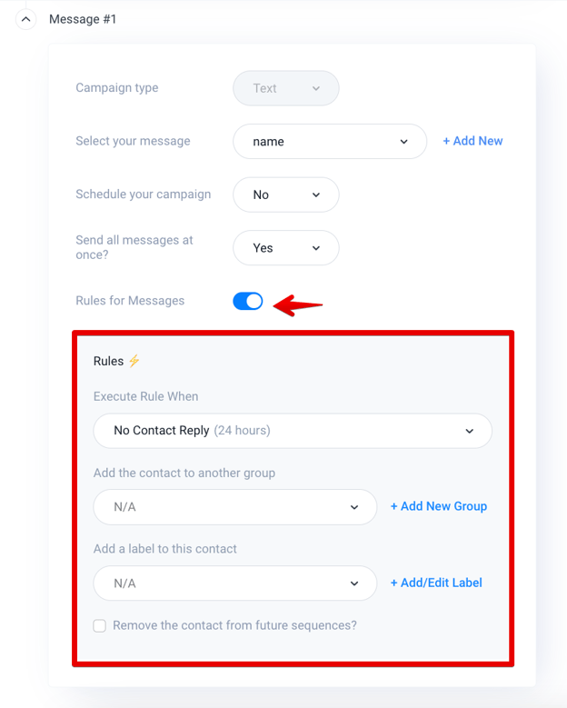 7. Click Send campaign after Message #2 -Message #9 to send all the messages set up in the drip campaign.