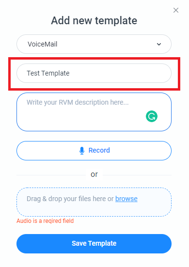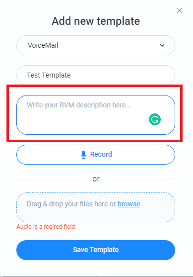 - VoiceMail: Enter a short description of the message you're looking to upload. This field has a 160-character limit, and its content is only displayed to you on the dashboard: