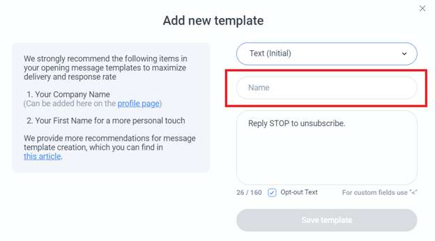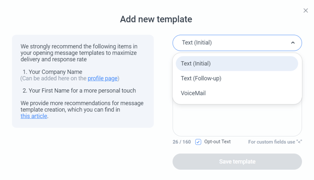 Pro tip: All Elite users can remove the opt-out language from the templates by removing the checkmark next to the "Opt-out Text" set-up of each template. We recommend keeping the opt-out language in the initial templates and removing it from the follow-up templates only.