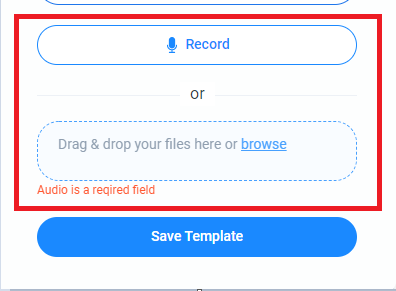 5.1. Click Record to record one audio file using the recorder in the modal or select the audio file from your computer by dragging&dropping it into the field/ clicking browse to upload it from your PC.
