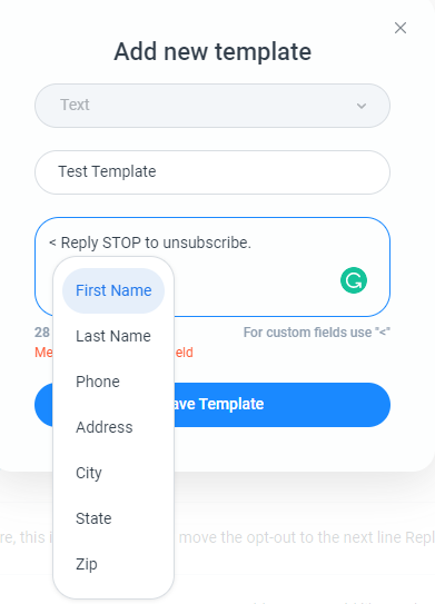 **Note: Now, it's mandatory updating the templates to comply with the current opt-out language policies and best practices. Thus, all text templates include the opt-out language 'Reply STOP to unsubscribe.' by default. The opt-out language counts toward the character limit, and currently, it cannot be customized.