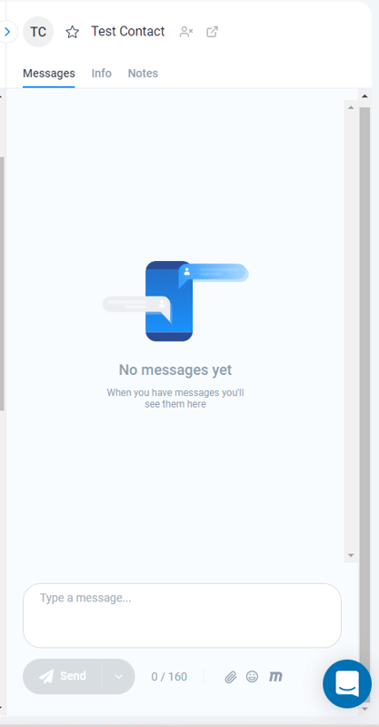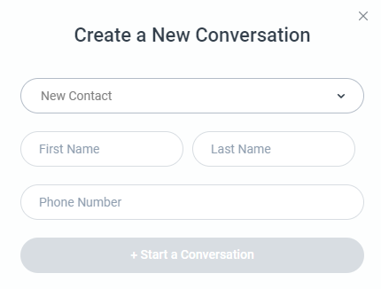 - New Contact, if you'd like to message a new number that is not yet in the system. In this case, you'll need to add the First Name, Last Name, and Phone Number: